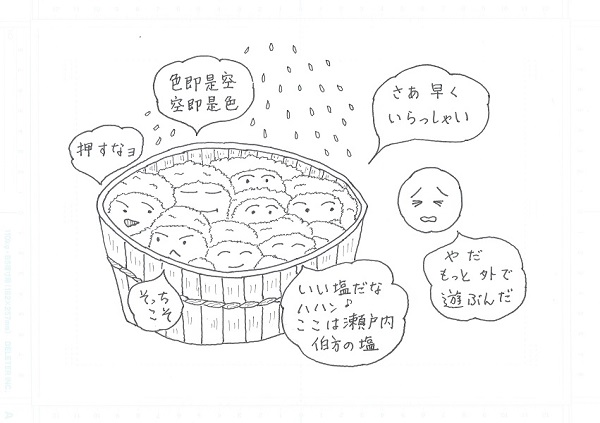 塩、梅、塩、梅、塩塩塩、焼酎、重石。